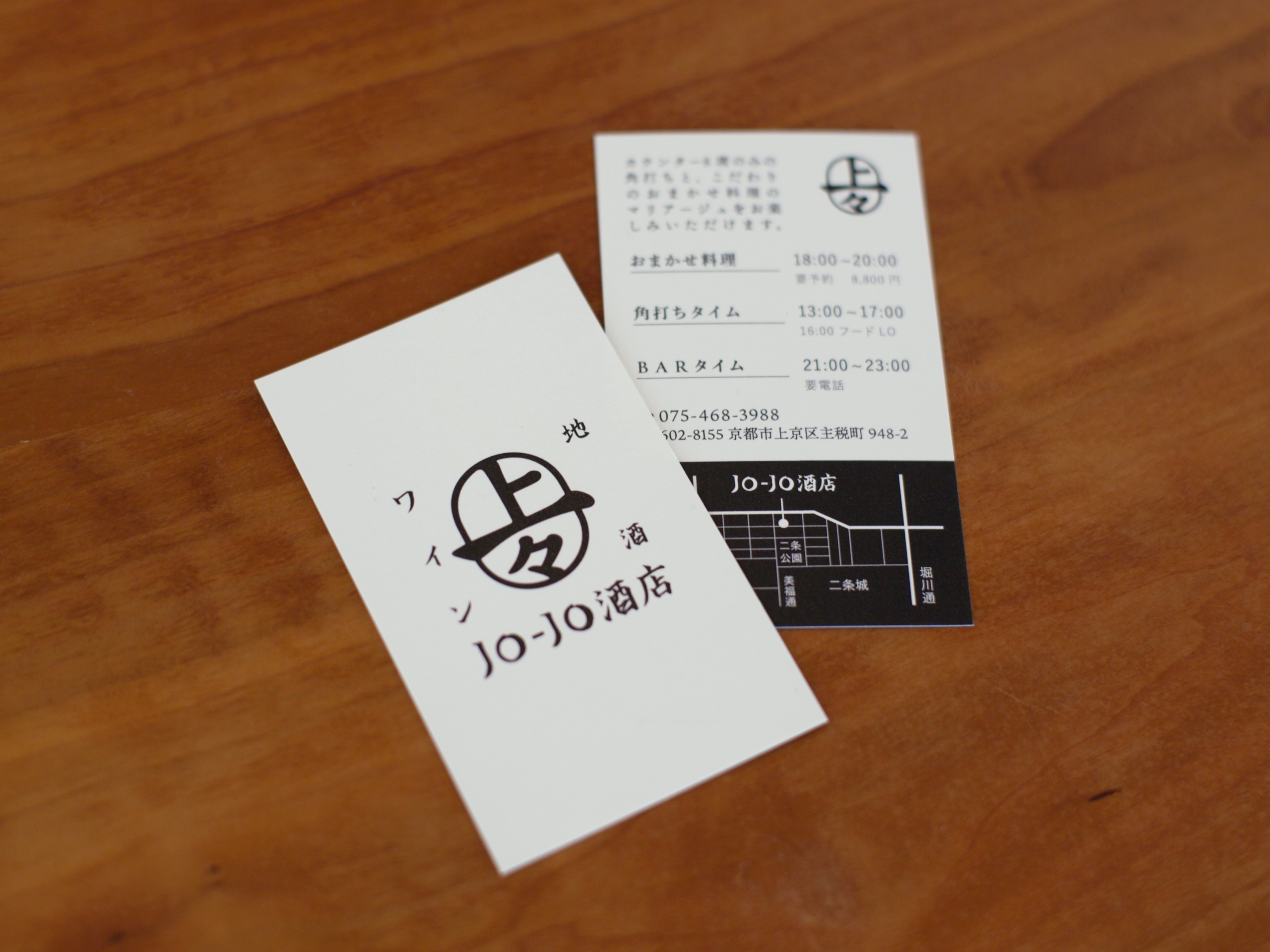JO-JO酒店 2025.11.19 地酒とワインを中心に、お酒に合うアテを楽しめるJO-JO酒店。 昼は角打ちとして気軽に利用でき、夜はおまかせ料理を提供しています。 ロゴやショップカードの制作、お店の装飾の一部を担当しました。